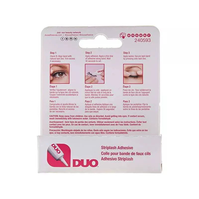 غراء الرموش الصناعية الذي تفضلينه: يتميز لاصق الرموش DUO Strip بتركيبة متقدمة، ويجف بسرعة، ولا يمكن اكتشافه، ويثبت الرموش الشريطية في مكانها بشكل آمن.
